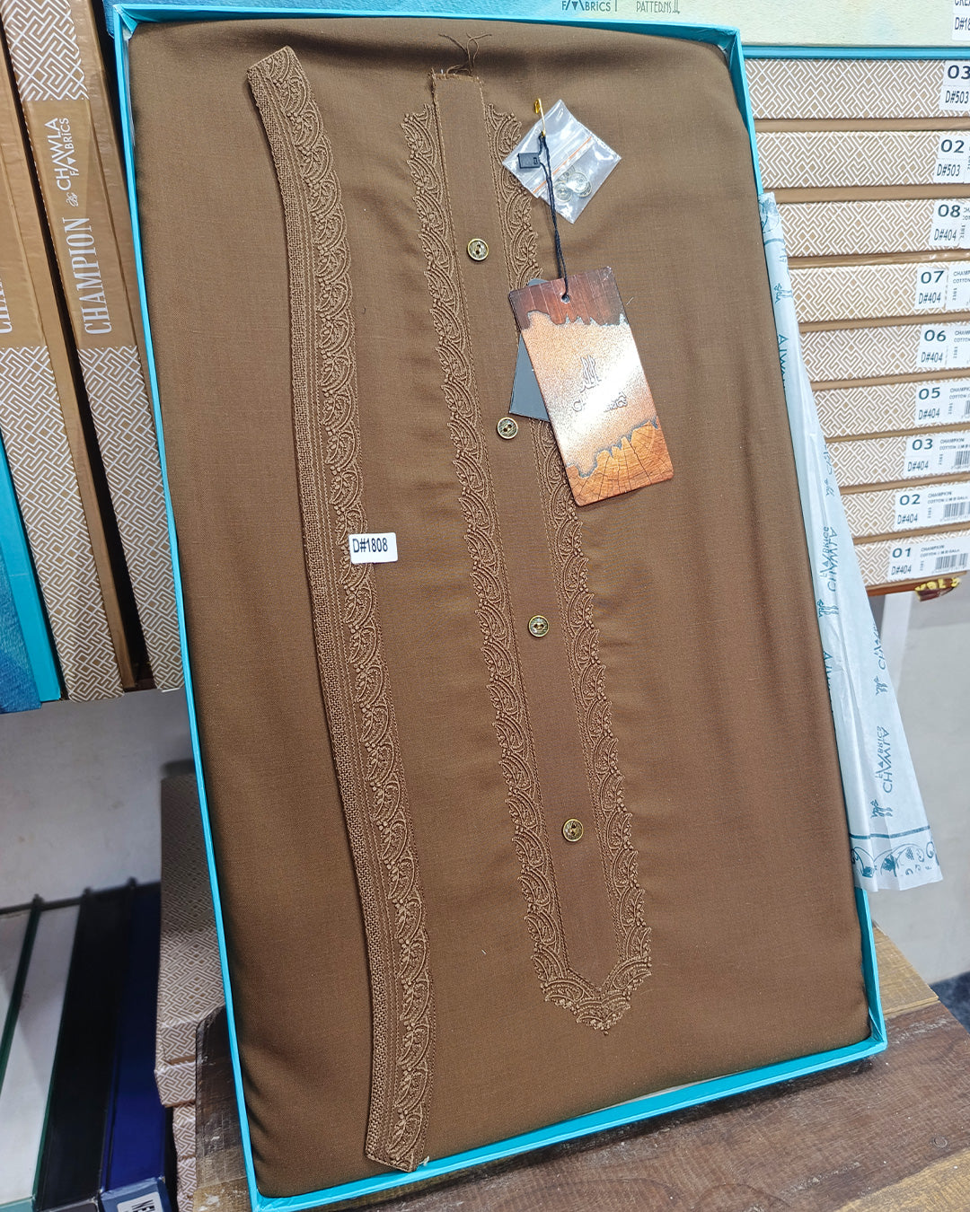 Step into classic elegance with the Brown Wash & Wear Embroidery Gala Ban Suit – Article 1808. Crafted for men who value style, comfort, and modern convenience, this suit features premium wash & wear fabric and delicate embroidery on the gala ban neckline, providing a polished, sophisticated traditional look with minimal effort.